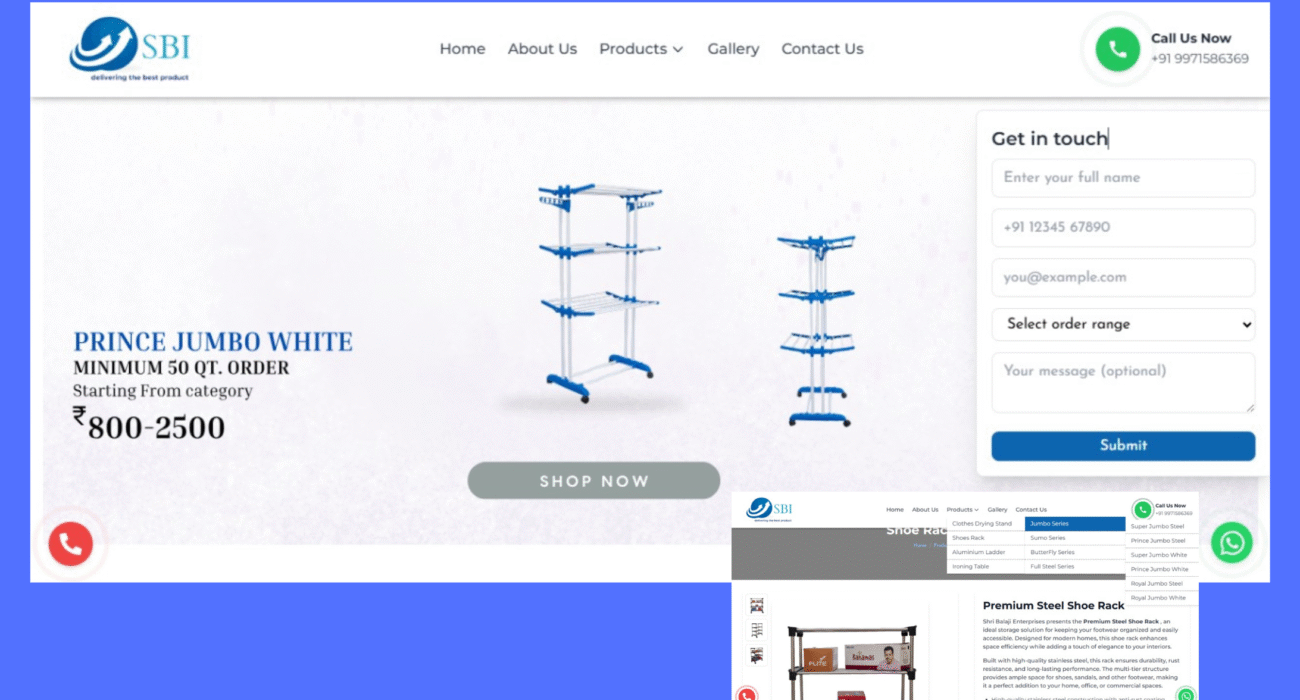 Custom Product Listing Website for SBI The “Product Showcase and Order Enablement Platform” for SBI was developed as a fully responsive, scalable e-commerce interface featuring over 30+ product listings with real-time inquiry capabilities. This digital transformation project focused on showcasing household utility products in a clean, conversion-optimized layout, helping SBI [...]