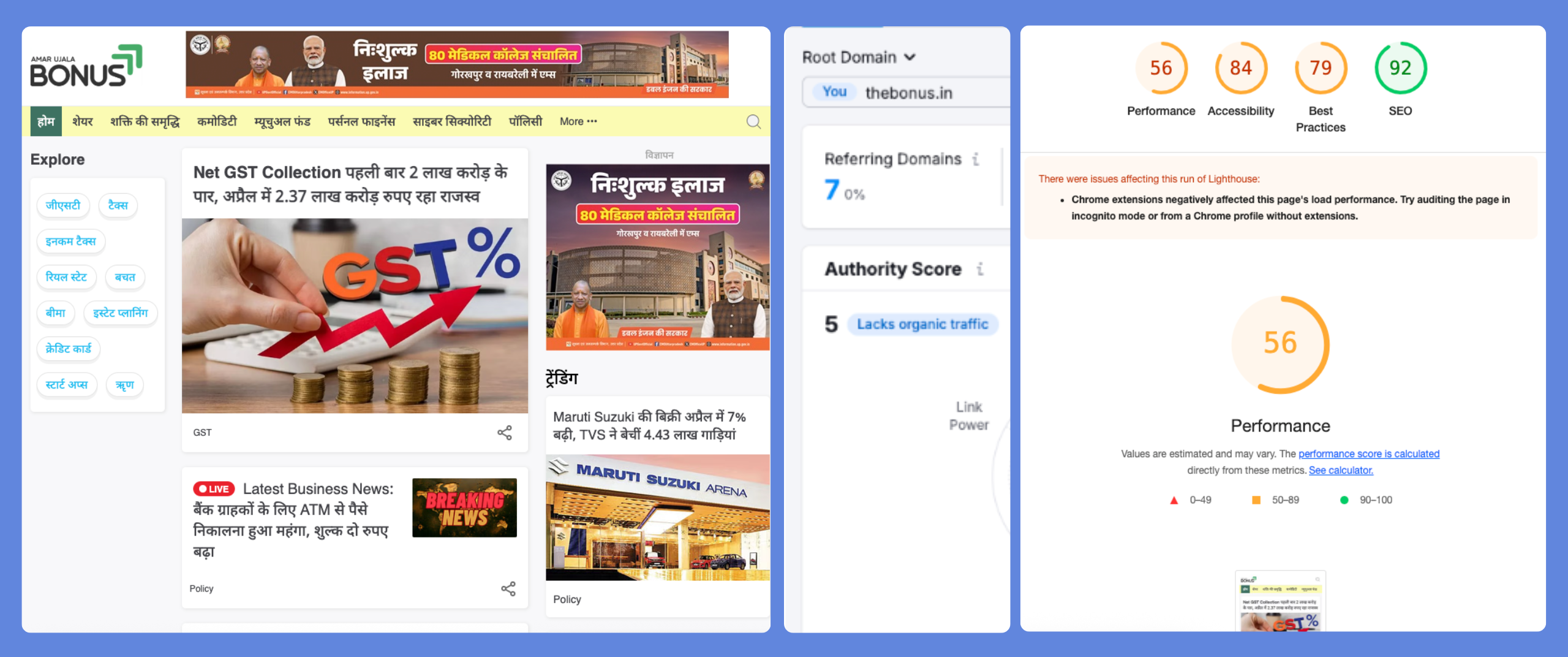 The SEO blueprint delivered for TheBonus.in set the foundation for a performance-driven and conversion-oriented strategy. With Google PageSpeed and CWV benchmarks met post-optimization, the site was better indexed, mobile-friendly, and ranked for relevant queries.